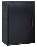 Armoire en acier robuste à une porte. Fini texturé noir durable. Résiste à la rouille et produits chimiques. Poignée en polymer. 3 tablettes dont 2 ajustables.