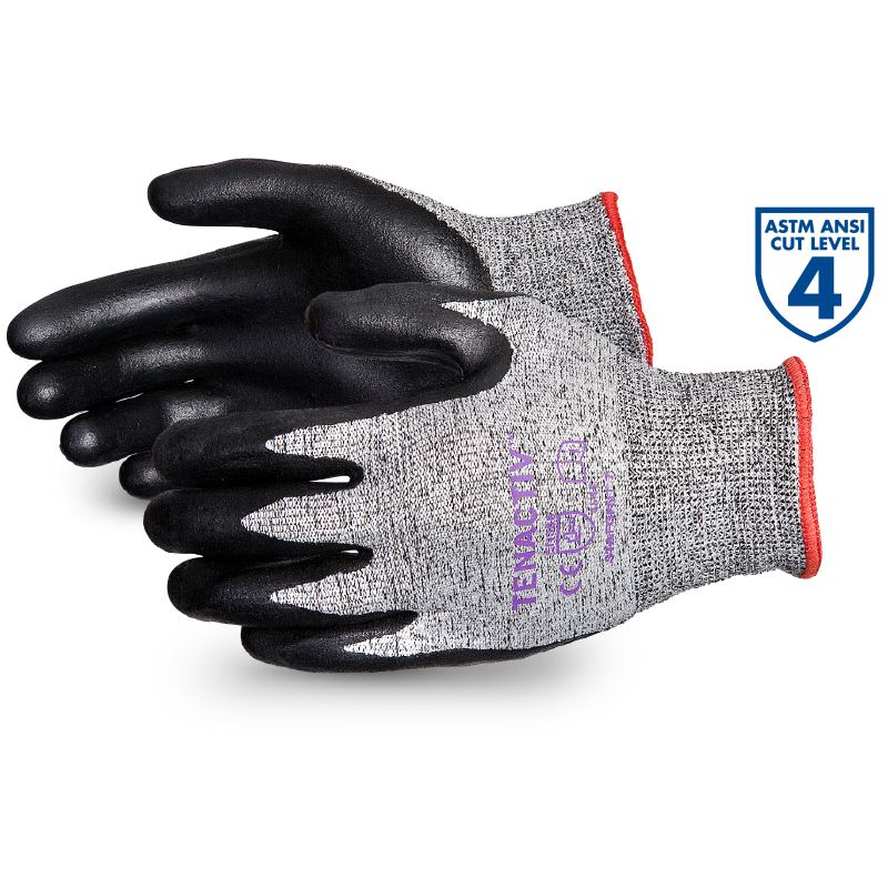 TenActiv® paumes enduites en mousse de nitrile noir sur une coquille tricot 13 jauge gris mou-