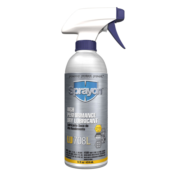 Le lubrifiant sec haute performance LU™708 est un lubrifiant sec polyvalent, non tachant, non huileux, propre. Sèche rapidement en une pellicule de recouvrement blanche.