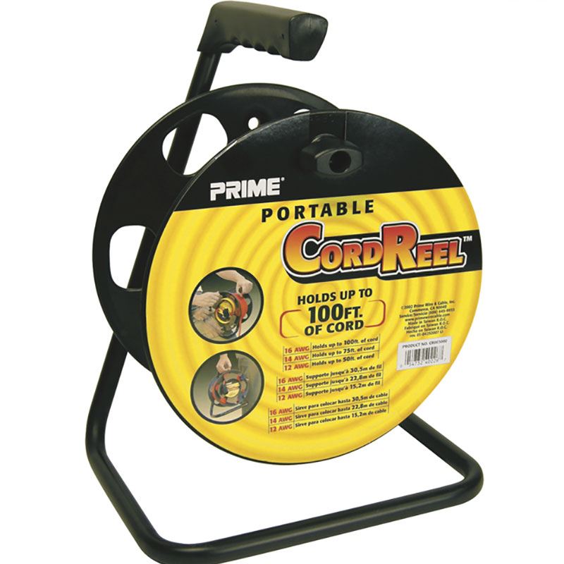 Support tubulaire en métal noir pour la gestion des rallonges électriques. Le dévidoir portable de PRIME® offre un entreposage des rallonges sans emmêlement