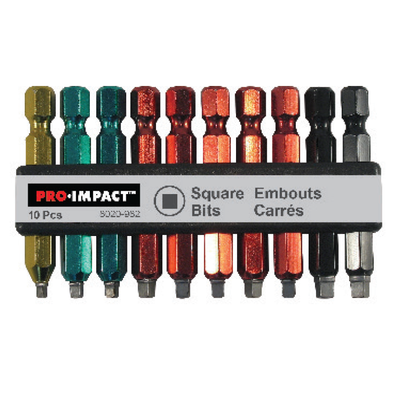 SQUARE POWER DRIVER BITS 1/4" 2 PARTS COLOUR-CODED