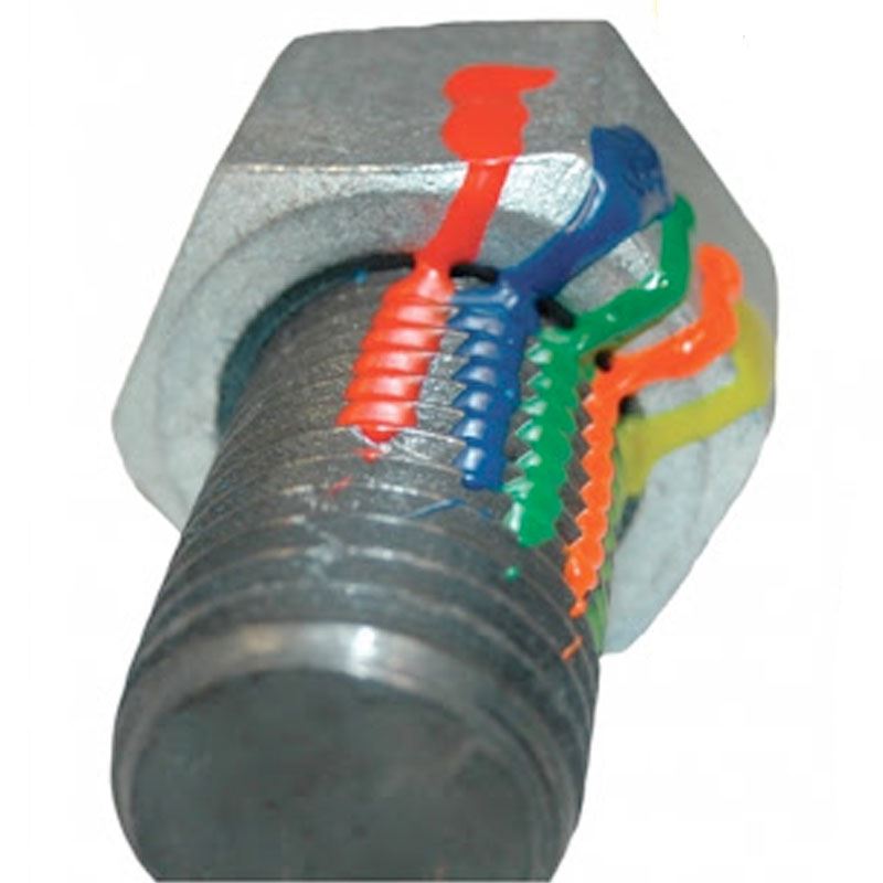 Permet des vérifications visuelles des fixations pour voir si elles ont "slacké". Sous forme de gel, appliquer une ligne directement sur l'écrou et le boulon. Si l'attache a loussé, la ligne sera brisée.